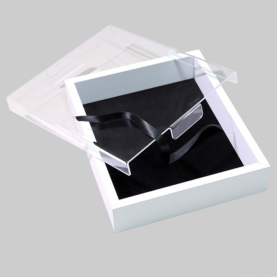 Caixa pinho com tampa acrílica md. branca